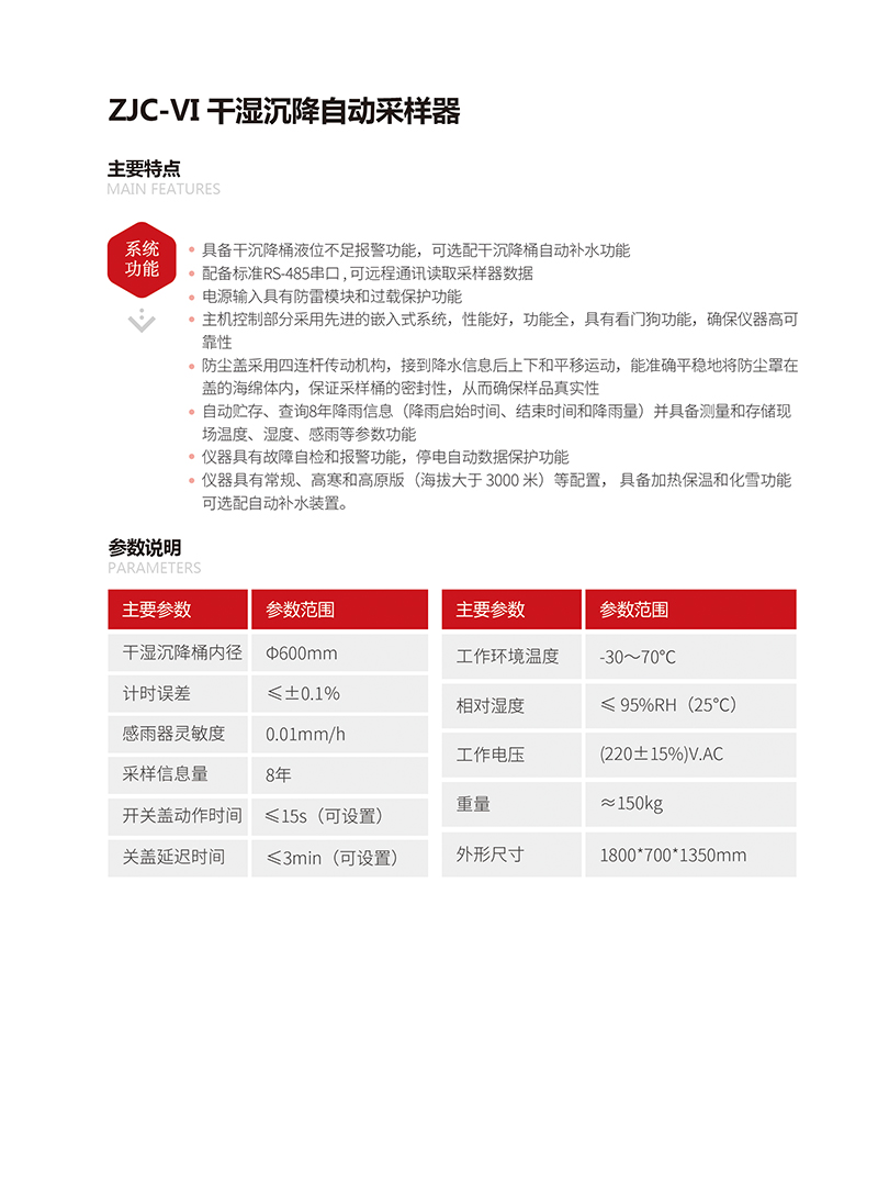 本儀器采用雙桶四聯(lián)桿結(jié)構(gòu),適用于各級(jí)輻射監(jiān)測(cè)站和科研院所有選擇性地采集干濕性沉降物,進(jìn)行大氣中輻射量的監(jiān)測(cè)和研究。